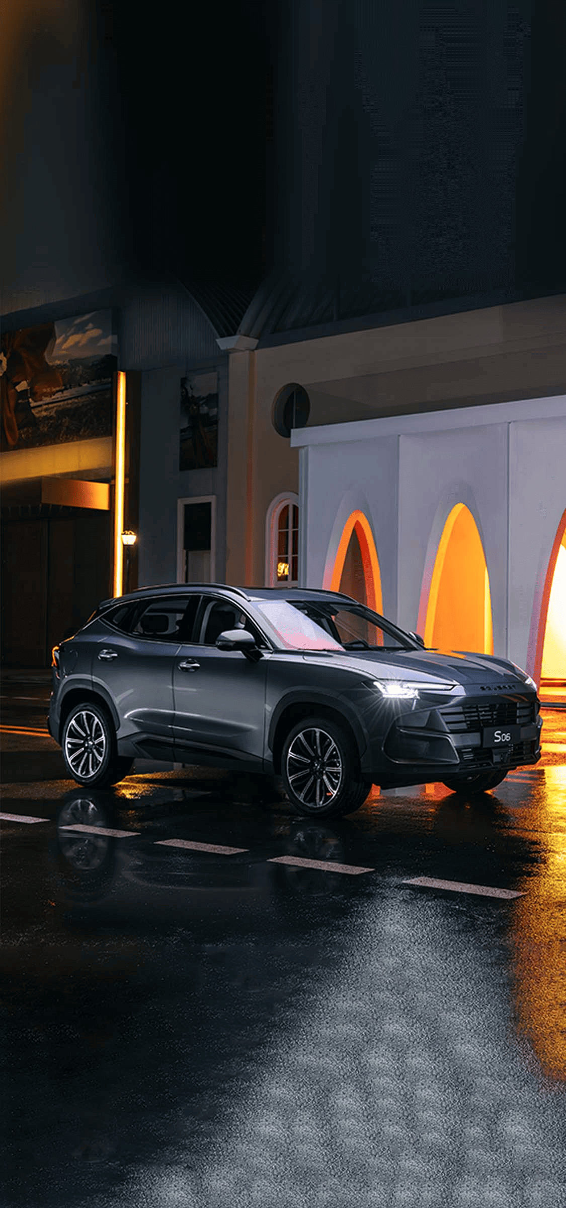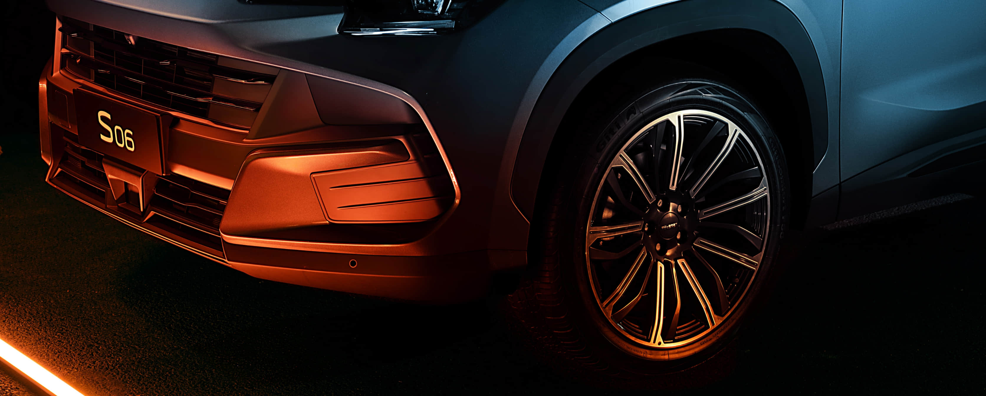 Los radios anchos aumentan el poderoso impacto visual del S06. Los cubos de rueda más grandes le dan al coche un aspecto más deportivo.